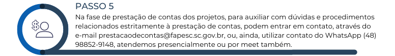 Agende seu horário de atendimento no Setor de Prestação de Contas por telefone, Meet, através do e-mail prestacaodecontas@fapesc.sc.gov.br ou pelo Whatsapp (48) 98852-9148, das 12h às 19h.